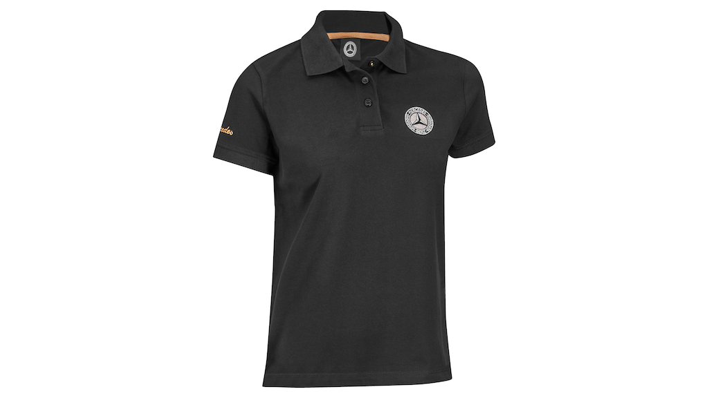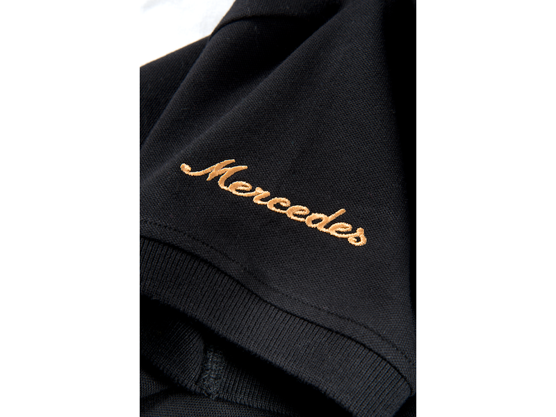 Elegante polo da donna con moderno taglio slim fit. Realizzata in 95% cotone e 5% elastan, è un capo estremamente comodo. Raffinato dettaglio: la Stella Mercedes storica applicata sul davanti, decorata con cristalli color oro, che non passa certo inosservata. Completa il look riuscito di questa polo da donna la scritta «Mercedes» color oro sulla manica destra.
