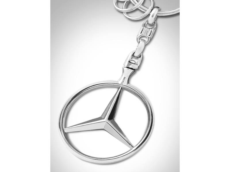 Con il portachiavi in zinco pressofuso lucidato a specchio non bisogna più perdere tempo a cercare le chiavi. L'anello portachiavi piatto di questo pratico accessorio consente di inserire tutte le chiavi più importanti mentre i tre mini-anelli aggiuntivi permettono di sostituire o di estrarre le singole chiavi rapidamente. Il suo design riproduce la Stella Mercedes originale.