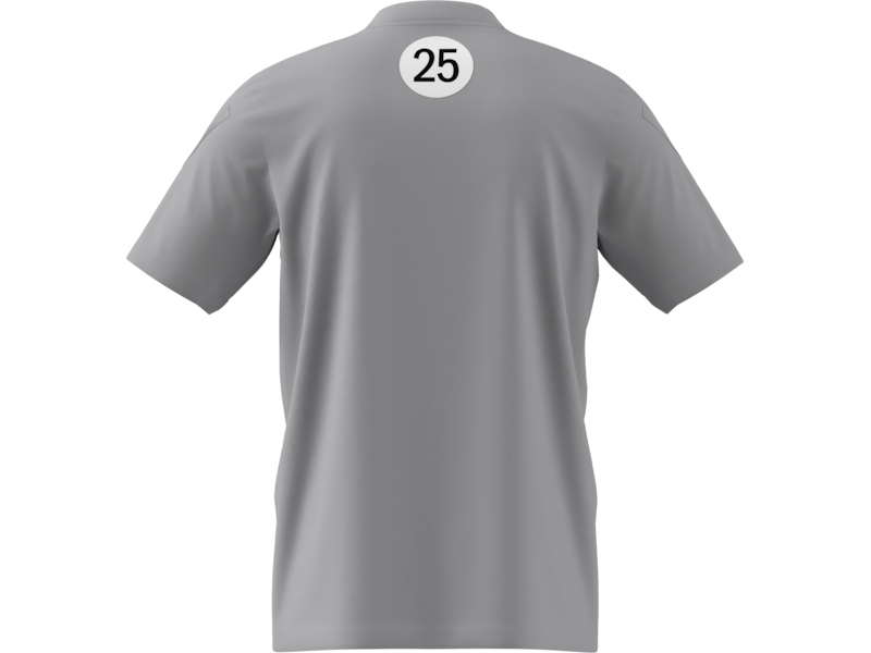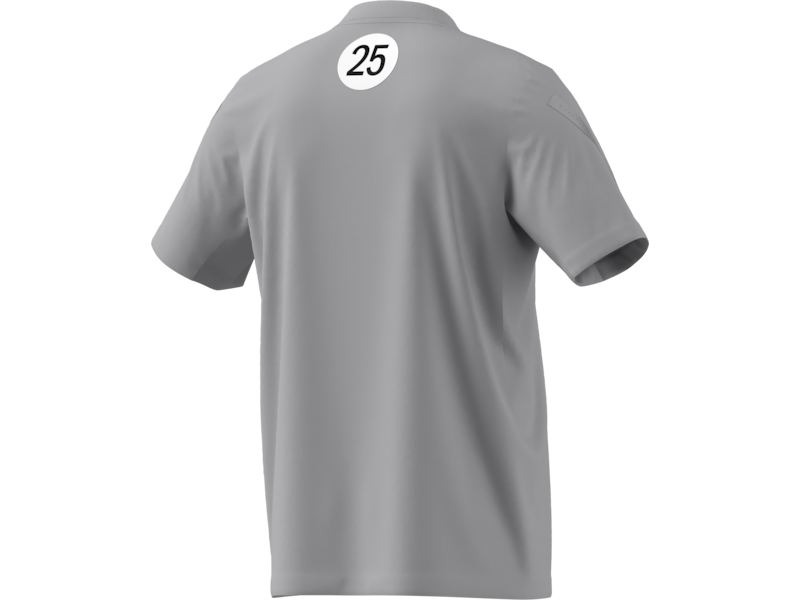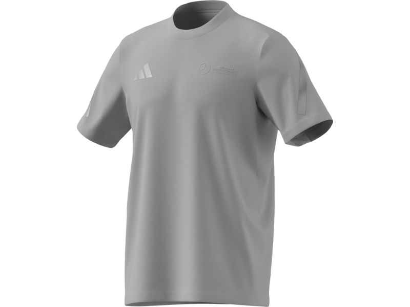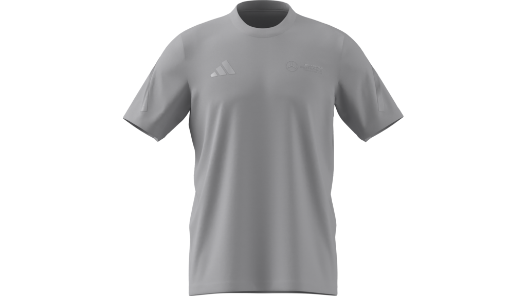 T-shirt grigia Mercedes-AMG PETRONAS Formula One Team un omaggio al Gran Premio di Gran Bretagna 2025. Perfetta per il tempo libero o per lo sport, mostra la tua passione per il Motorsport con un design raffinato: strisce argento sulle maniche e i loghi del team e Adidas sul petto.