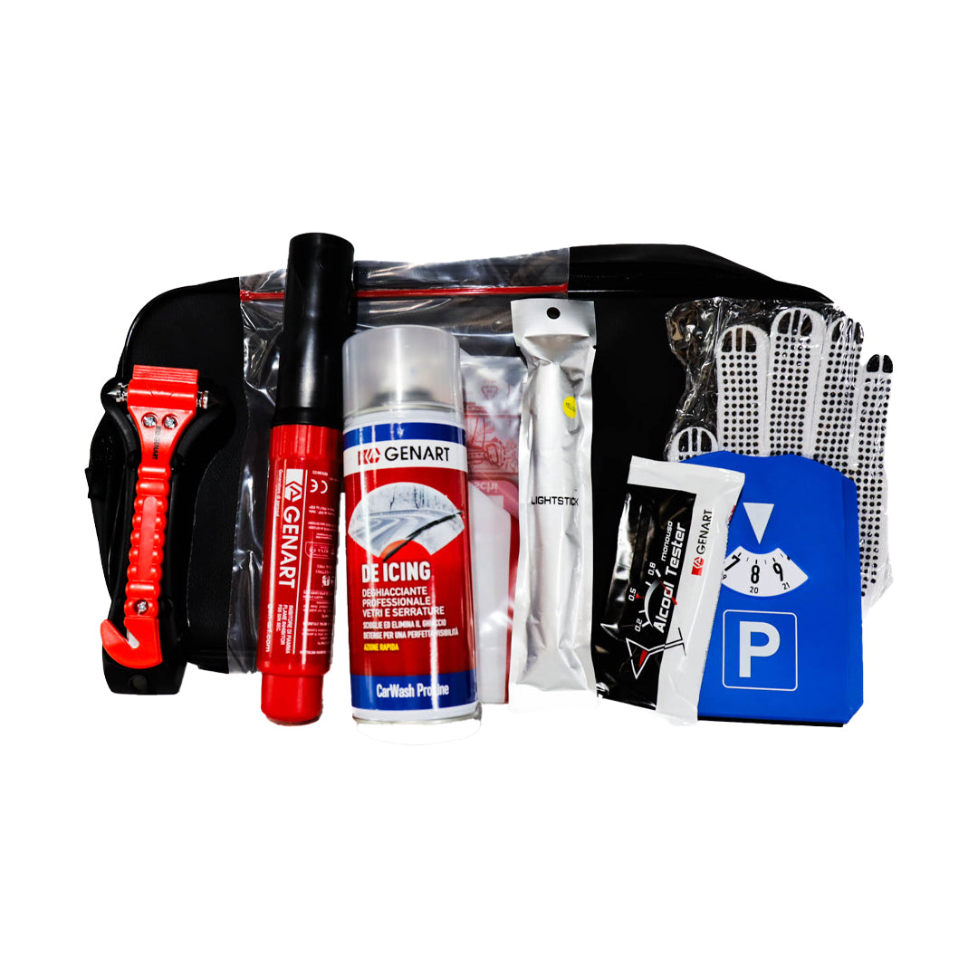 A Trivellato állandó elkötelezettségével az emberek védelme és jóléte Készlet közúti vészhelyzet Úgy tervezték, hogy minden utazás során derűs és biztonságot nyújtson. Belül pontos alapvető termékek választékát találja meg, amelyek célja a kis balesetek és vészhelyzetek azonnali szembesülése, biztosítva, hogy a teljes nyugalomban élhessen és mozogjon.