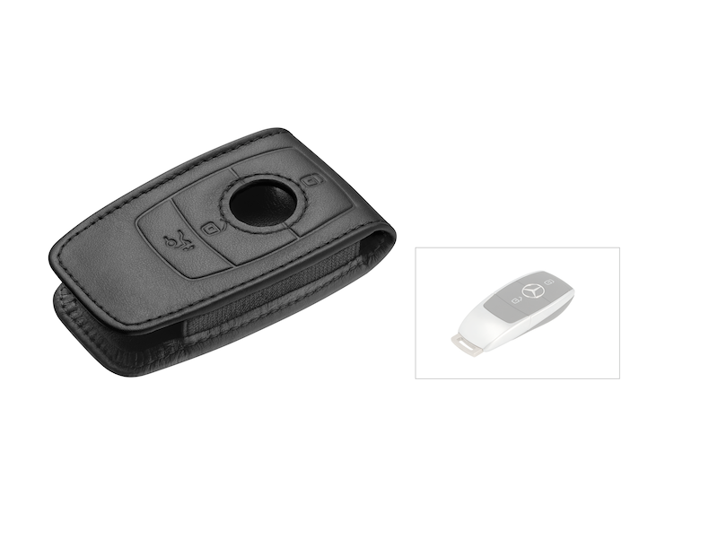 Un dettaglio pratico: Con questa pregiata custodia portachiavi le chiavi sono sempre a portata di mano. Nella custodia in pelle di vitello è presente una rientranza per alloggiare una Stella Mercedes di ca. 1,8 cm. La scritta Mercedes-Benz incisa perfeziona il piacevole look complessivo.