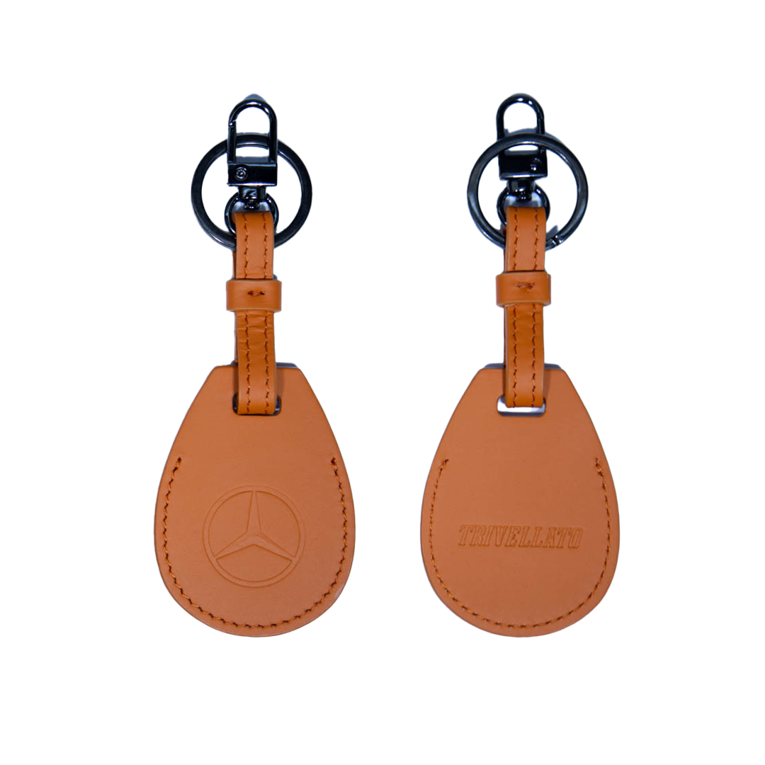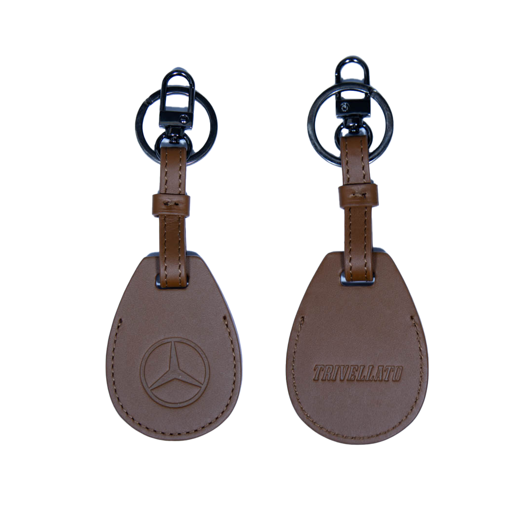 Un portachiavi che unisce stile e funzionalità, con il logo Trivellato e il simbolo della stella Mercedes impressi per sottolineare un connubio senza tempo, sinonimo di eccellenza e passione per i motori.